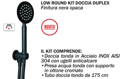 KIT DUPLEX ROUND MANICHETTA TONDA CON PRESA ACQUA NERO OPACO CON DOCCIA E TUBO vedi scheda tecnica.