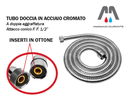 FLESSIBILE DOCCIA ACCIAIO CROMATO DOPPIA AGGRAFFATURA F.1/2 CONICO UNIVERSALE